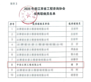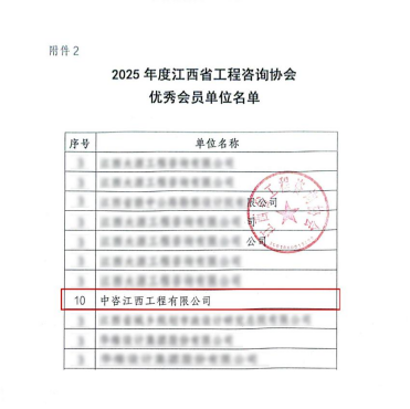 近日,根據(jù)江西省工程咨詢協(xié)會發(fā)布的《關(guān)于2025年度江西省工程咨詢協(xié)會選樹評先結(jié)果的公告》,公司再次榮獲“2025年度優(yōu)秀會員單位”稱號,公司聯(lián)絡員謝萍榮獲“2025年度優(yōu)秀聯(lián)絡員”稱號。